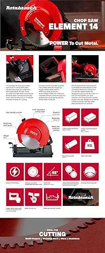 - Rotabroach’s Element 14 Chop Saw makes light work of cutting steel plate, square tube, angle iron, pipe, tube and sheet metal.